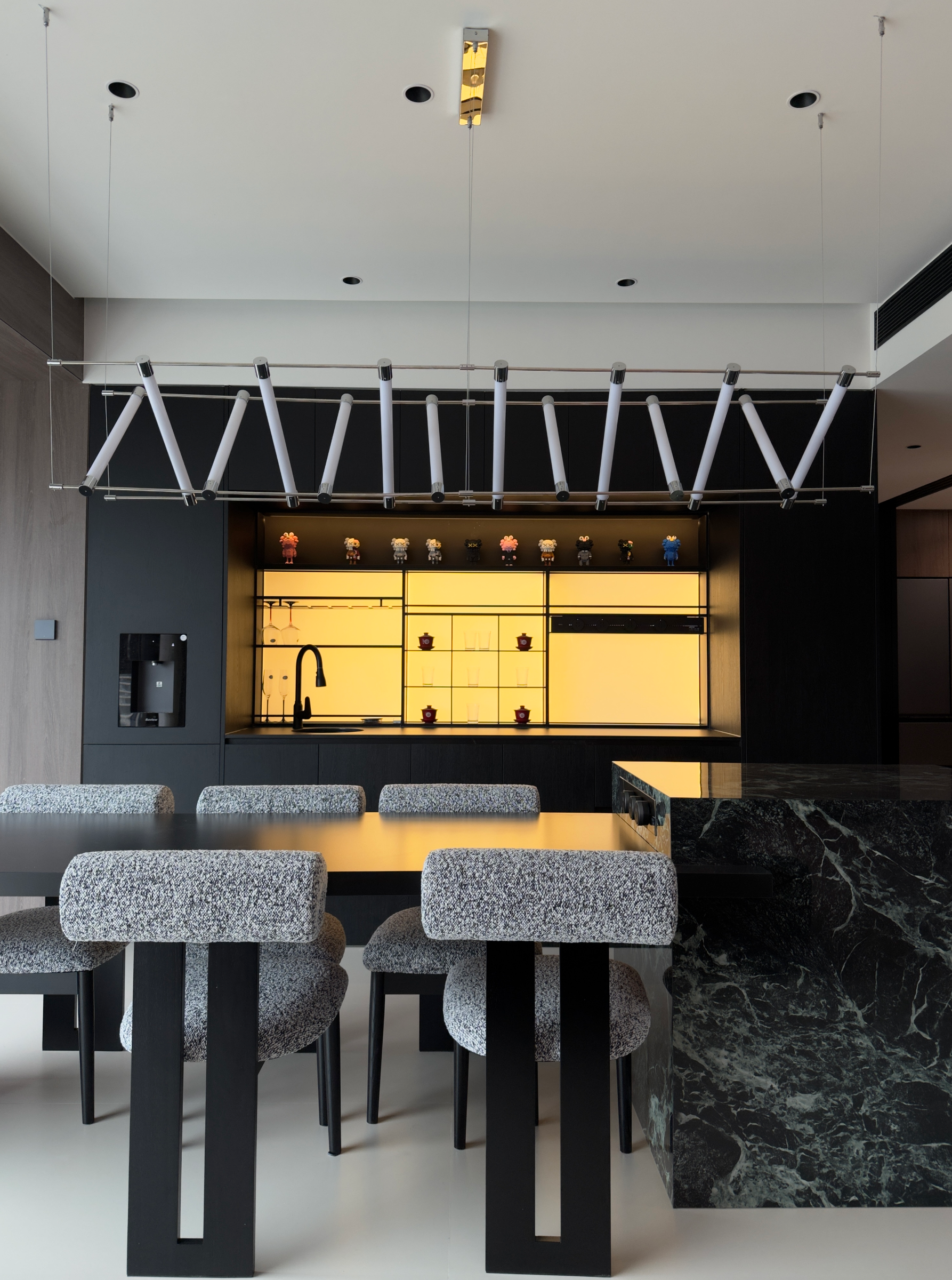建筑面积124m²,委托人是一位置业顾问,希望能通过丰富的材质和相对整体的颜色控制塑造一个有品质感的家。